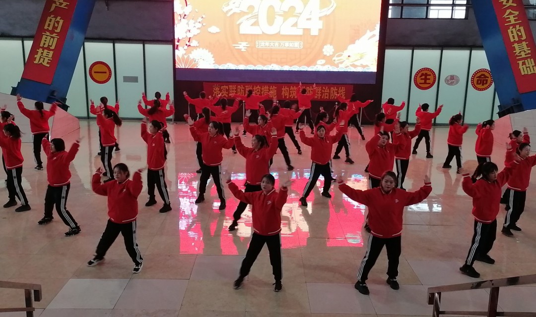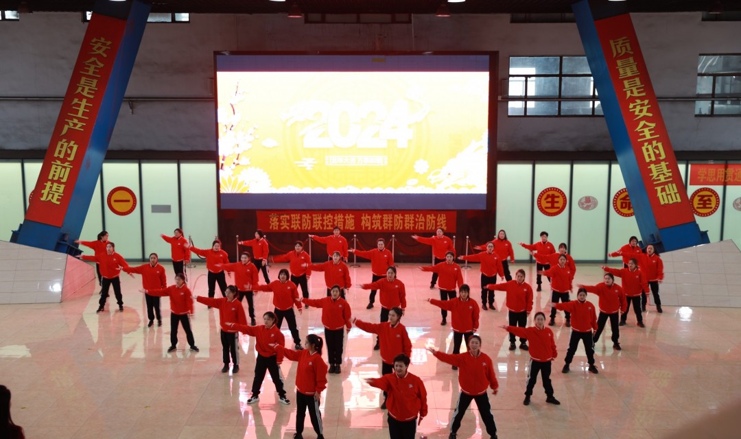 伴随着优美的旋律,身着红色上衣,黑色裤子,整齐划一的40名女工舞蹈队员,每天9点准时来到井口准入大厅,为出入井的矿工朋友...
