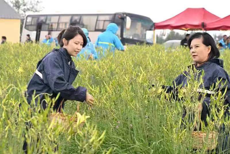 采摘黄花要求严格,需要在当天的花蕾未开放前及时摘下,也不能把明天要开放的“二角”摘了(农民称明天开放黄花为“二角”)。参加采摘的领导和嘉宾在技术人员专业的讲解后,开始帮助农民采摘,边采边与农民交流。“家里种了几亩黄花?”“自己采摘还是雇人采摘?”“今年收益怎么样?”“现在黄花价格是多少”……领导和嘉宾们一边采摘一边向农民调研黄花生产情况。“我家种了3亩黄花,去年收入不错,今年黄花品质好,销售价格更高”“这几年党的政策好,各级政府帮助销售,种黄花收入一年比一年好” ……广大农民热情洋溢地分享着黄花丰收的喜悦。一个小时的采摘很快结束了,金色的黄花盛满了一个个花篮,大家的脸上洋溢着丰收的笑容。