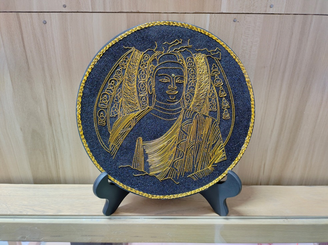 走进掐丝珐琅画工作室,记者看到,工作室中所陈列的作品题材大多源自云冈石窟与佛教。葛春芳表示,生长在这片土地,首先要立足于本土文化,将大同最具内涵、最为代表的石窟和宗教文化呈现大家。