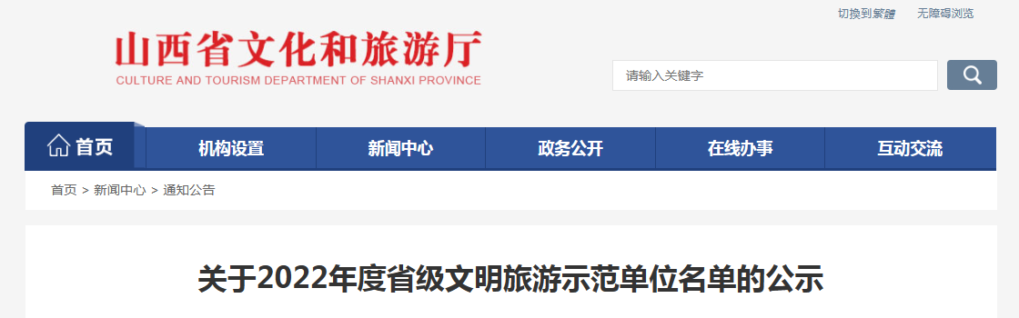 山西红马国际旅行社、山西太平洋国际旅行社、中国国旅(山西)国际旅行社、山西万豪美悦国际酒店、灵石县王家大院民居艺术馆、静乐县天柱山景区、汾阳市贾家庄文化生态旅游区、大同城墙景区、云冈石窟景区、大同晋华宫井下探秘游景区、大同方特欢乐世界景区、舜帝陵景区、堆云洞景区、山西省永乐宫壁画艺术博物馆、黎城壶山旅游度假区、欢乐太行谷、八路军文化园景区、襄汾县荷花小镇旅游景区、黄河壶口瀑布风景名胜区、中镇霍州市七里峪景区、皇城相府景区、山西泉美国际大酒店。