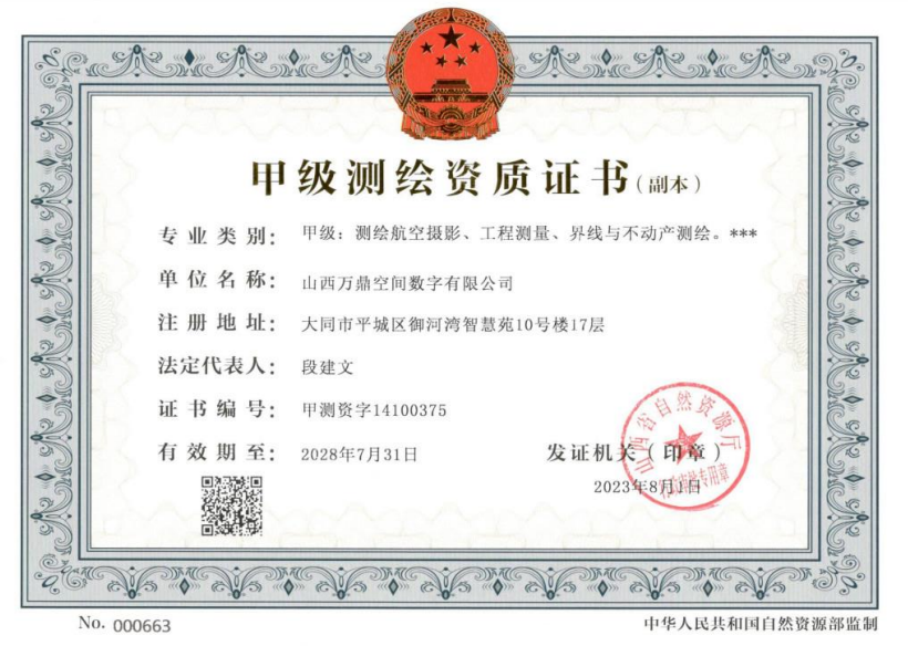 (山西万鼎取得甲级测绘资质证书)