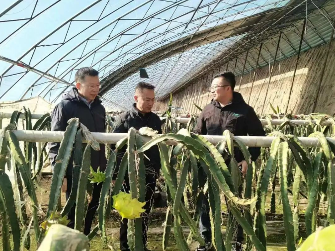 王正忠一行先后对辣椒、火龙果、圣女果等蔬菜种植大棚进行了调研,通过实地察看,了解了当前蔬菜种植和长势情况,向负责人询问今年种植技术、配套设施建设、蔬菜产量、市场销路和收入等情况,并对基地积累的经验和取得的成绩给予了充分的肯定。