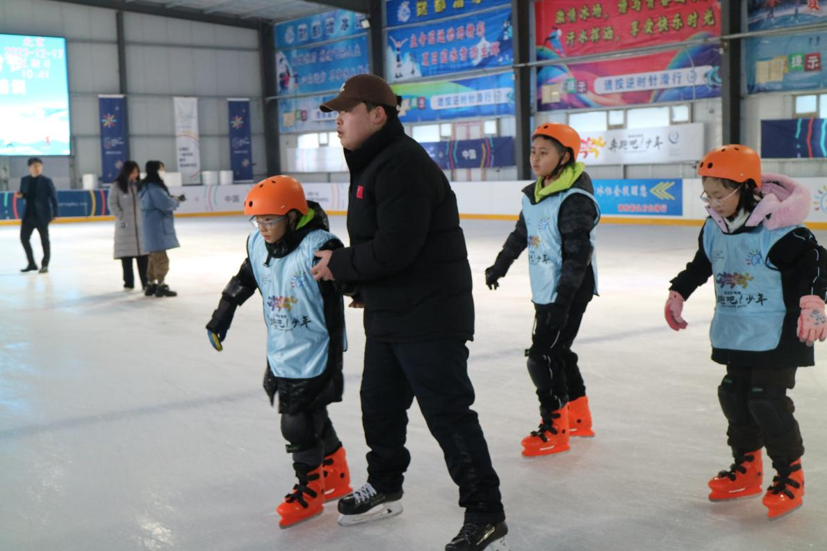 在培训过程中,孩子们怀揣着对滑冰的热爱开始接受培训。专业的滑冰教练员对孩子们进行了系统的指导和训练。从基本的滑冰装备和护具穿戴、滑冰姿势、步伐到复杂的技巧动作,教练员都进行耐心细致的辅导。