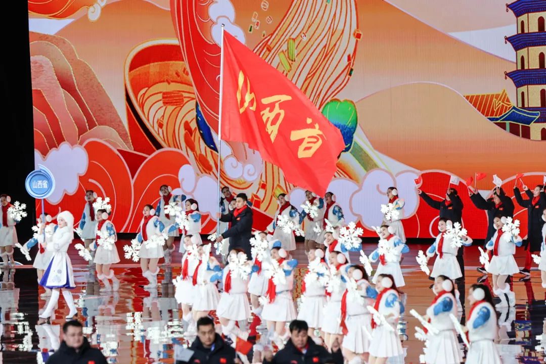 ▲2月17日晚,第十四届全国冬季运动会开幕式上,山西省体育代表团入场。宇巍/图