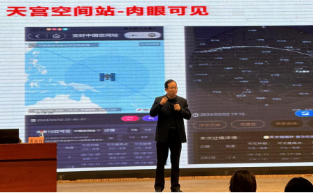 讲座围绕“我们为什么仰望星空?”“探索太空有哪些重要的科学问题?”“在太空和空间站长期生存面临哪些挑战?”“如何飞向更远的宇宙?”等问题展开。讲座中,周炳红老师带领听众回顾了中国载人航天克服重重困难,从最初的一人在太空生存一天,发展到三名宇航员可以在空间站持续生存180天的辉煌历程,展示了宇航员在太空中吃穿用住等方面的生活细节,与现场听众共同见证了中国载人航天取得的瞩目成就。周炳红老师表示,每一次航天技术的进步都意味着人可以更长时间地在太空生活。在浩瀚的宇宙中,人类是孤独的吗?宇宙中到底有没有外星人?面对这些追问,周炳红老师强调,我们需要秉持科学的精神,勇敢地走向太空寻找答案。