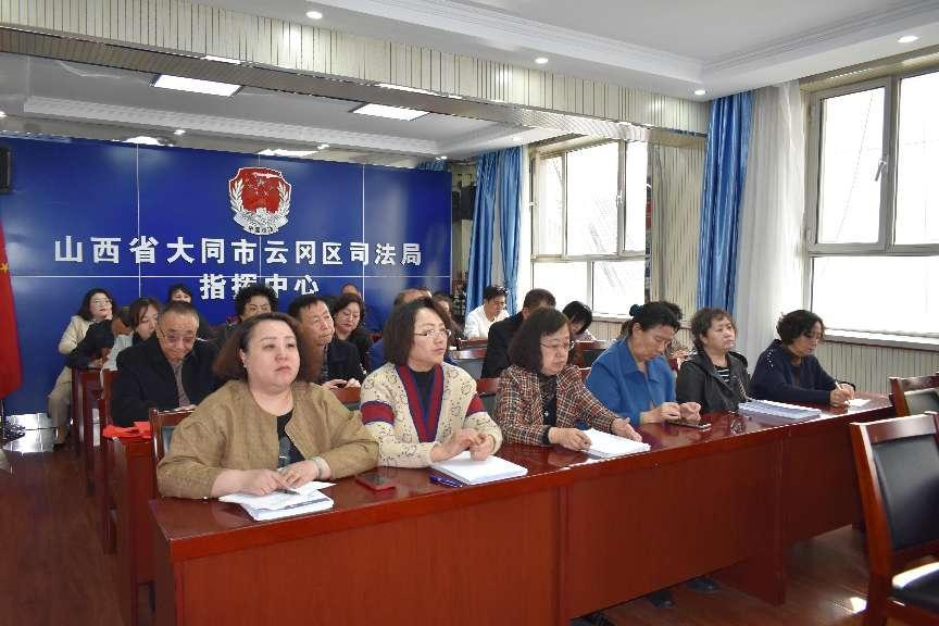 云冈区司法局公共法律服务管理室、公共法律服务中心和各乡镇(街道)公共法律服务工作站的免费法律咨询值班人员参加了会议。(王志强)