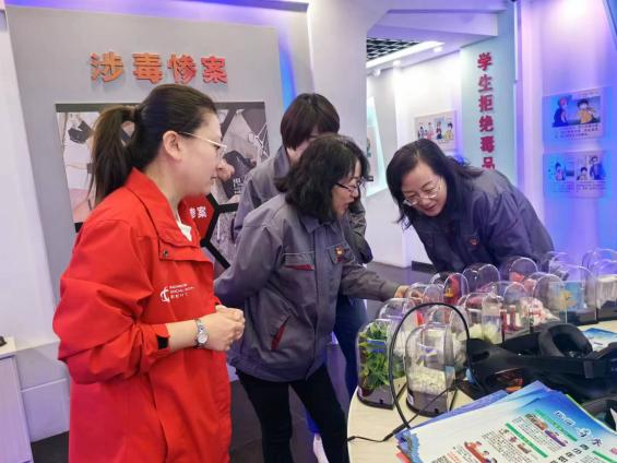 活动中,禁毒社工通过展示仿真毒品模型、发放禁毒宣传资料等方式,以图文并茂的形式,向企业职工介绍什么是毒品、毒品的种类以及禁毒相关政策与法规,结合真实案例详细讲解吸毒对个人、家庭以及社会的严重危害,并普及识别、防范和抵制新型毒品的“小妙招”。