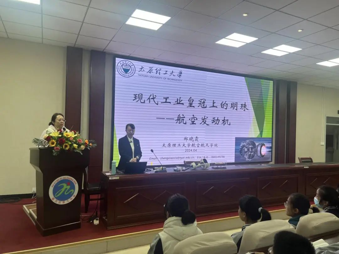 本次活动邀请太原理工大学副研究员郑晓霞作了题为《现代工业上的皇冠明珠——航空发动机》的科普讲座。郑晓霞围绕航空发动机的发展历程、研发流程、结构与分类、前沿与发展等方面开展讲座,内容深入浅出、图文并茂,并通过互动交流启发同学们的思考,激发孩子们对科技的兴趣。讲座中,郑晓霞和同学们积极互动,同学们聚精会神、认真思考、主动发言,课堂氛围浓厚,不时响起热烈的掌声。