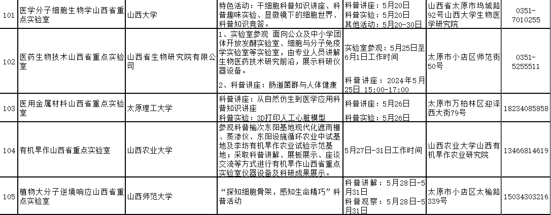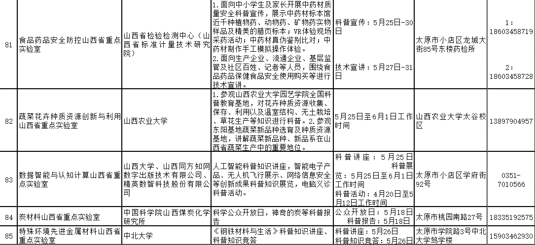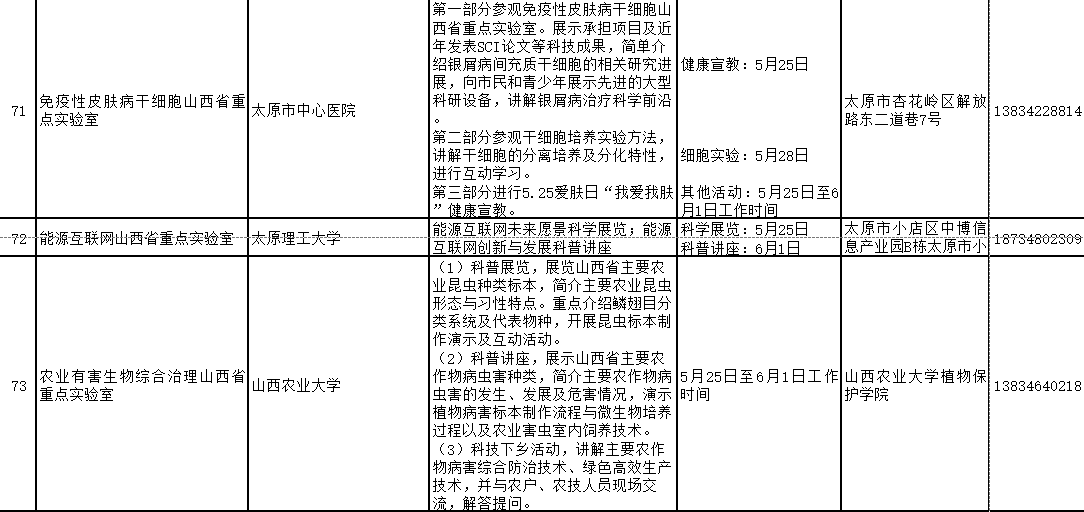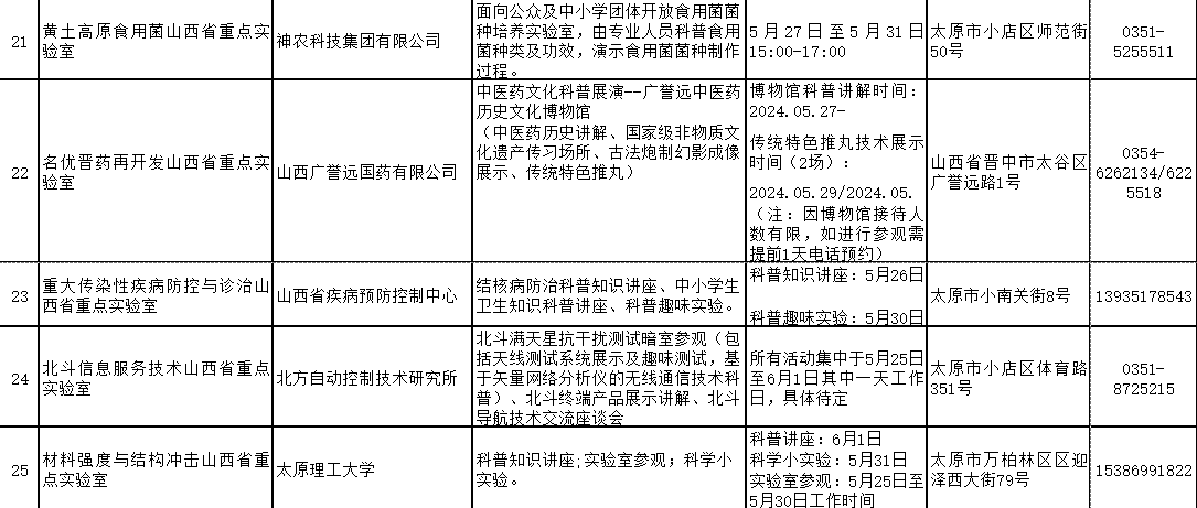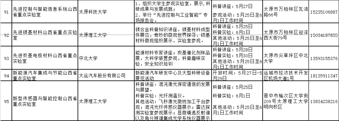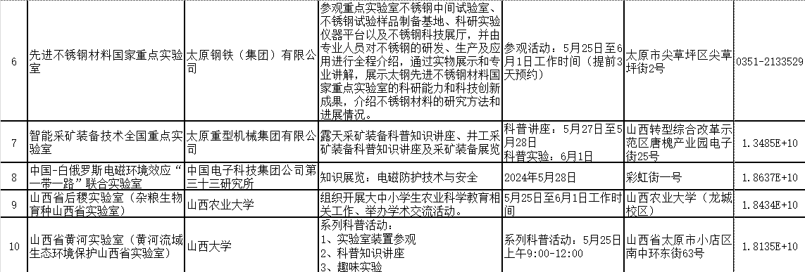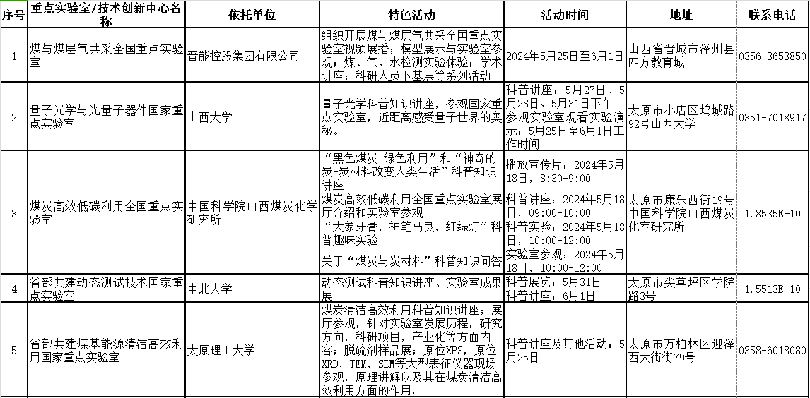 2024年山西省科技活动周(5月25日至6月1日)期间,全省多家重点实验室和技术创新中心将免费对公众开放。现将公众开放特色活动内容、开放时间和预约方式公开。欢迎社会各界和科学爱好者提前预约。