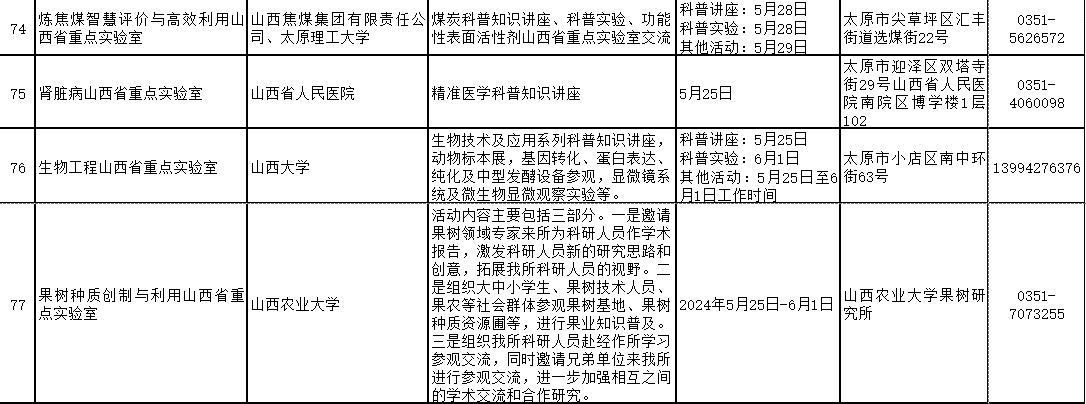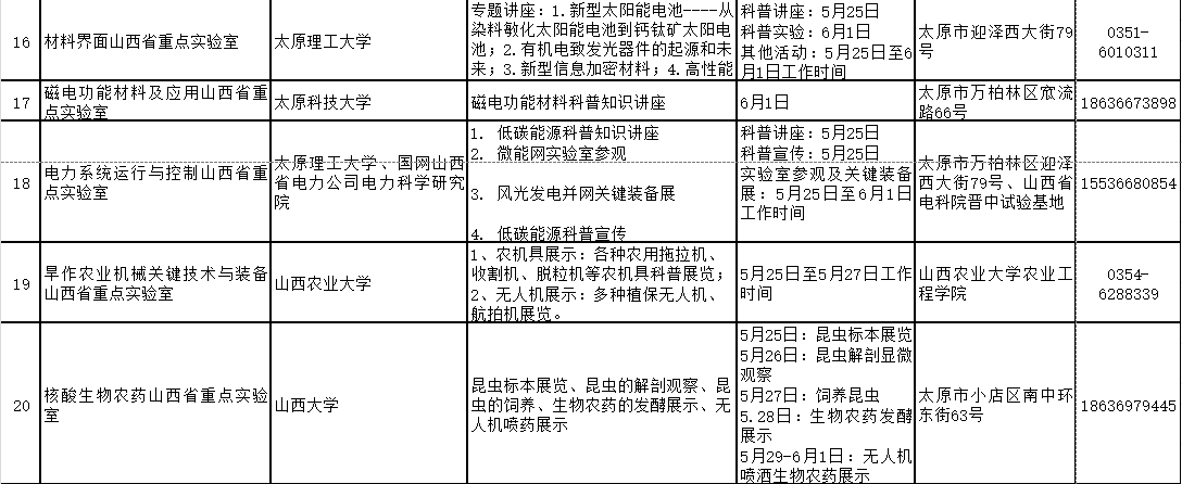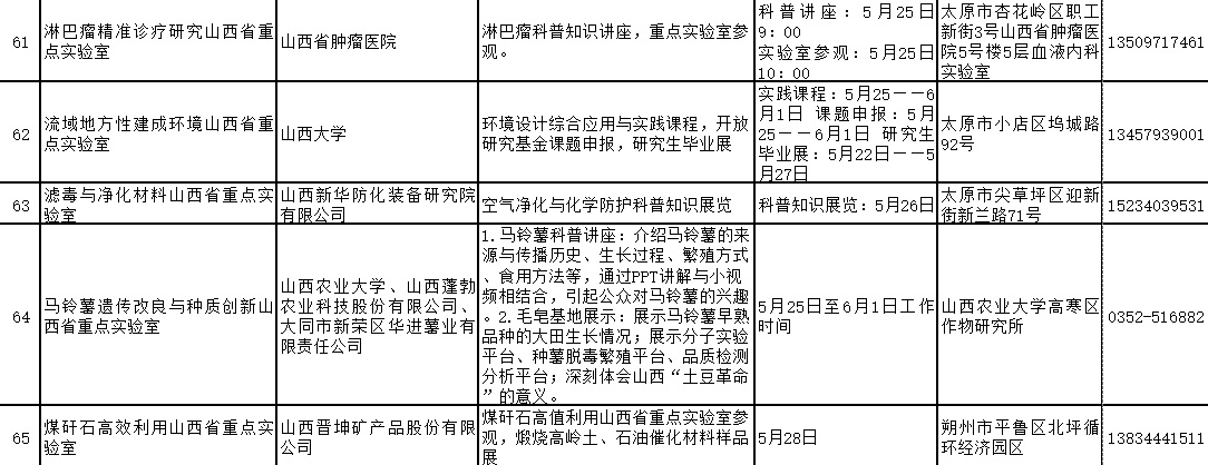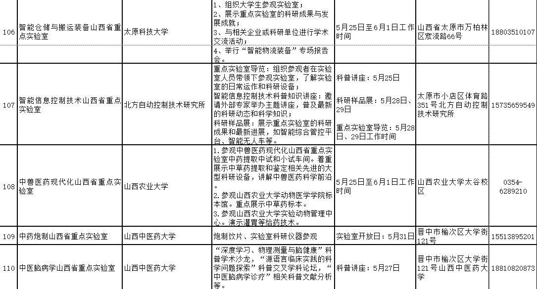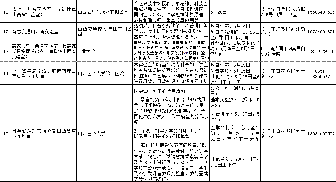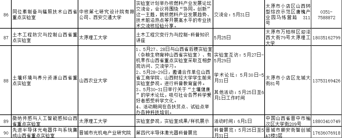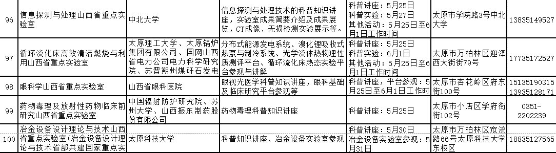 2024年山西省科技活动周(5月25日至6月1日)期间,全省多家重点实验室和技术创新中心将免费对公众开放。现将公众开放特色活动内容、开放时间和预约方式公开。欢迎社会各界和科学爱好者提前预约。