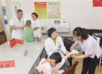 图为5月29日,市一医院专家耐心地为孩子们听诊、查体。 记者 戎禹仁摄