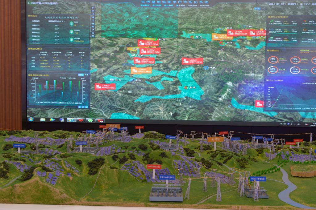 5月29日,记者拍摄的大同光伏发电监测服务中心的可视化系统。(新华社记者刘力航 摄)
