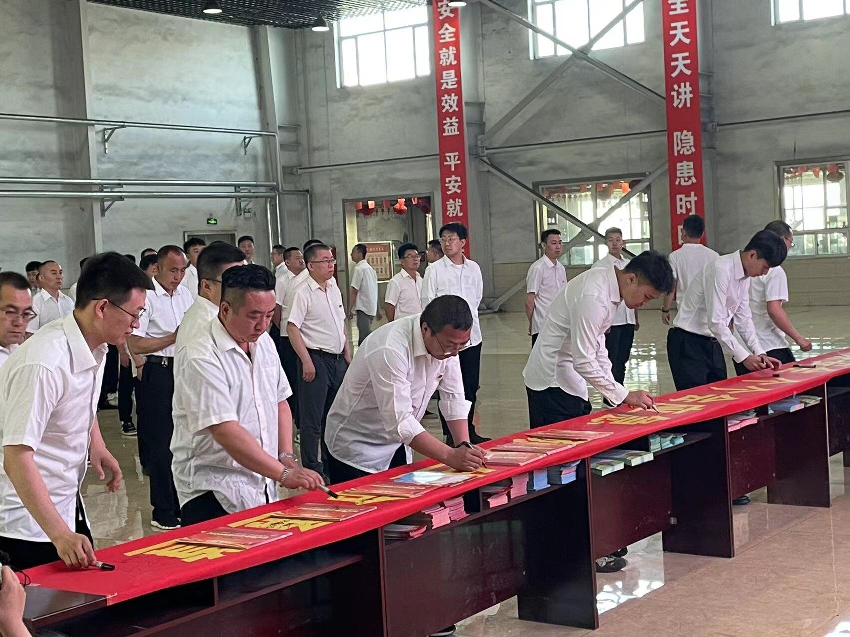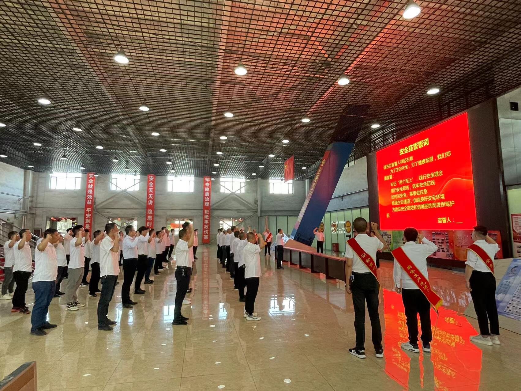 在井口大厅,他们开展安全宣誓、安全倡议活动,组织各区队干部员工代表百余人,整齐列队进行宣誓,随后组织众人在鲜红的“人人讲安全、个个会应急——畅通生命通道”主题条幅上进行安全签名,承诺以安全为中心开展日常各项工作。在井口咨询台前,安全宣传员不时向出入井员工发放安全宣传材料,提醒大家利用碎片化时间阅读、学习,增强安全管理意识。