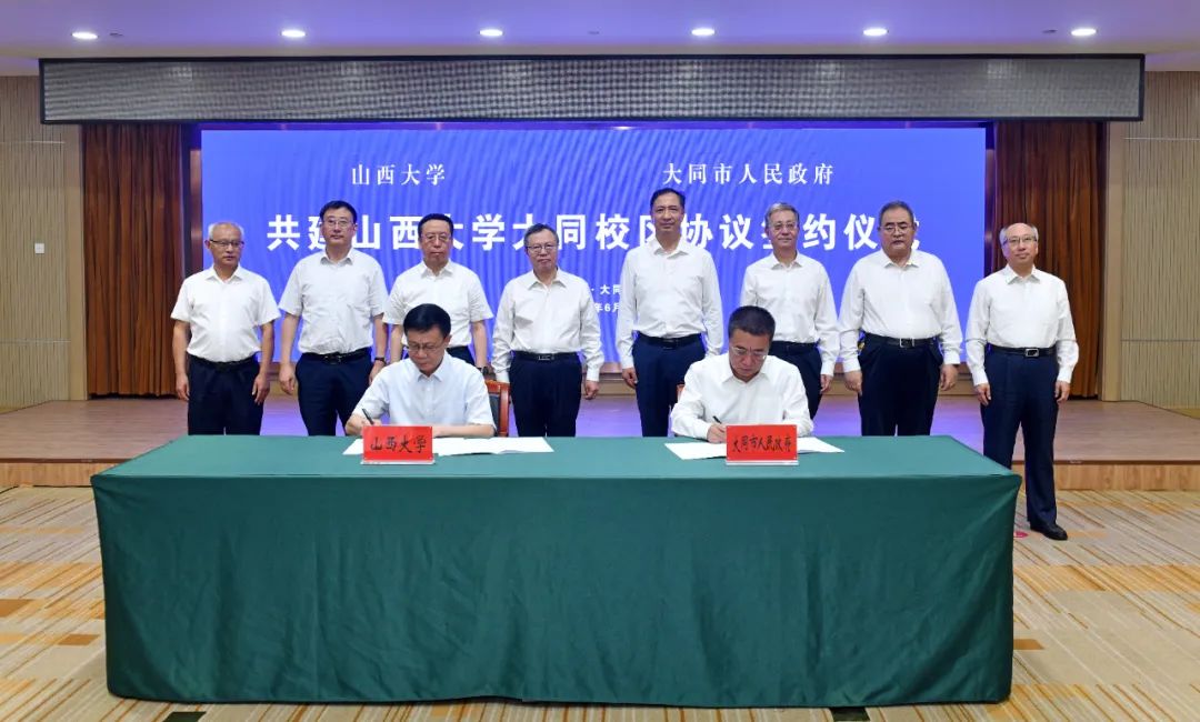 6月28日,山西大学和大同市人民政府共建山西大学大同校区协议正式签约。省委常委、市委书记卢东亮,山西大学党委书记王仰麟致辞。山西大学党委副书记、校长黄桂田,市委副书记、市长张强现场签约。市人大常委会主任谷明、市政协主席姚鸿波等市四套班子领导;山西大学党委副书记李富明,山西大学党委副书记、副校长张天才,省纪委监委驻山西大学纪检监察组组长、校党委常委臧运峰等山西大学党政班子领导出席并共同见证市校签约。