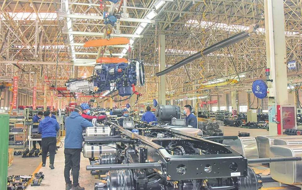 陕汽大同专用汽车有限公司生产现场。翁剑摄