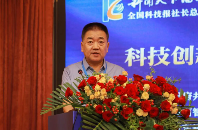 ▲ 中国科技新闻学会科技报分会理事长、山西省社科联党组成员、副主席郝建新致辞