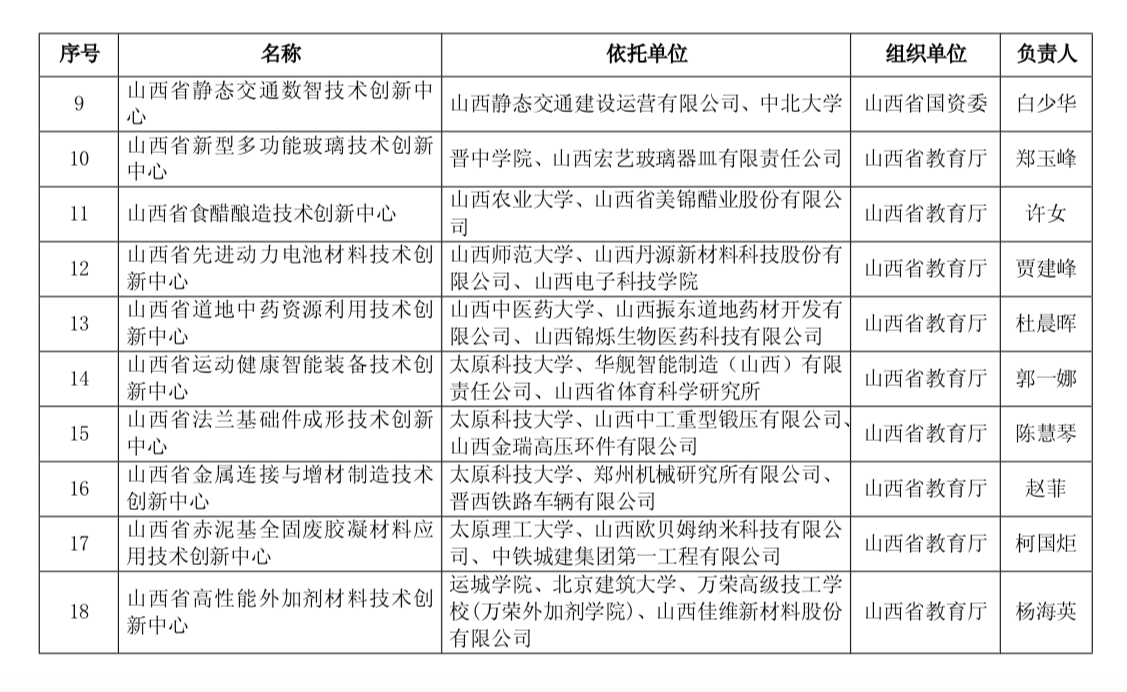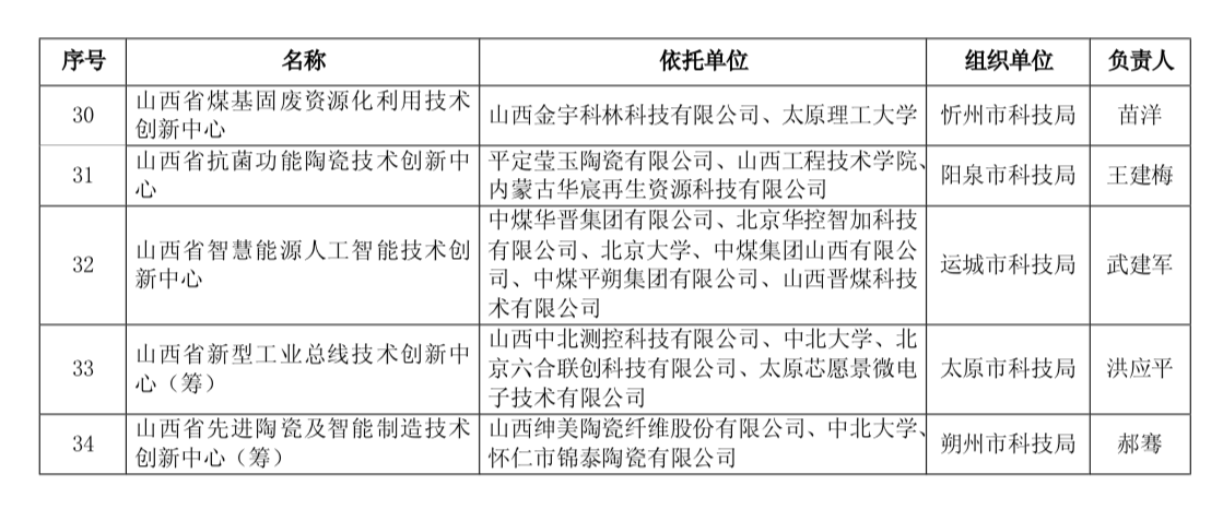 2024年度山西省技术创新中心拟立项建设(筹建)名单: