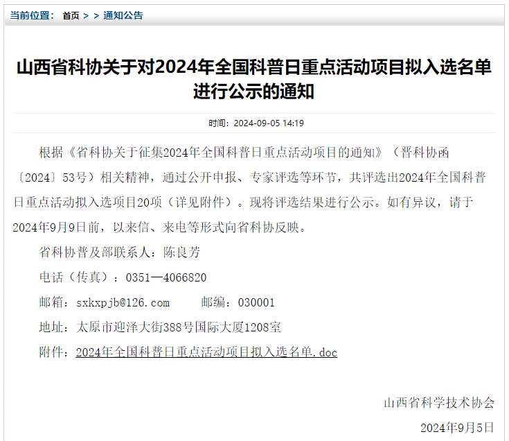 附件:2024年全国科普日重点活动项目拟入选名单