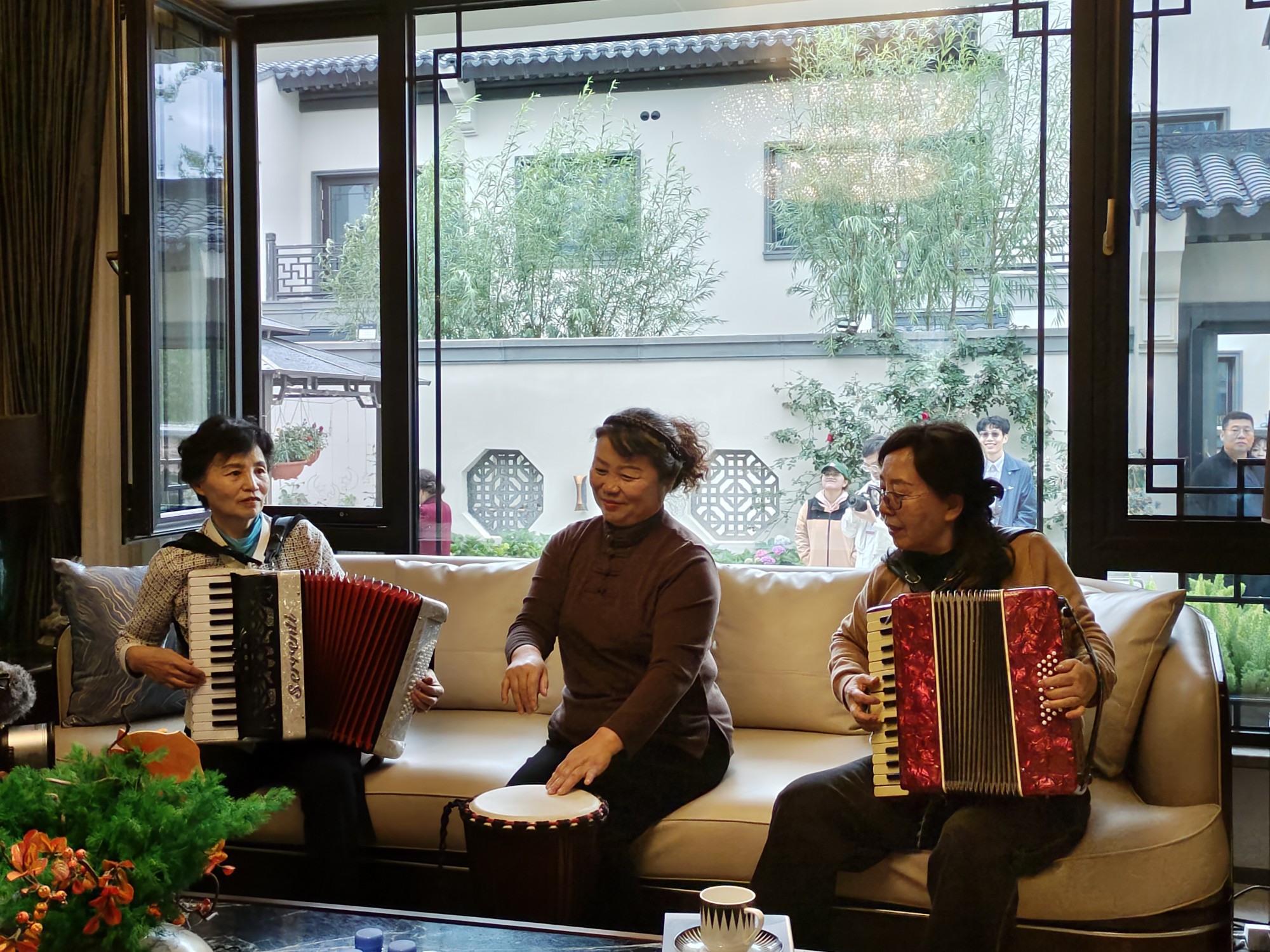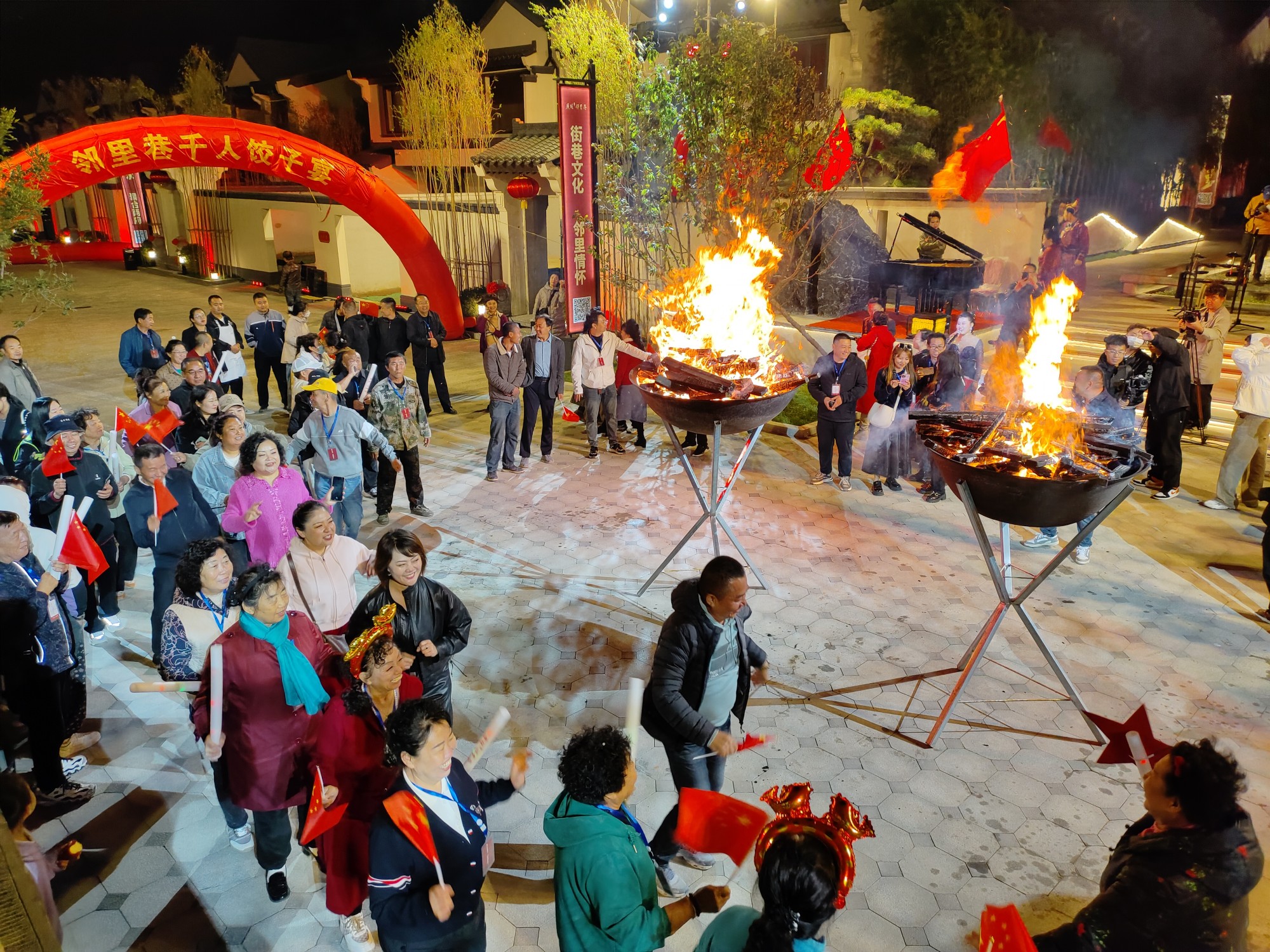 活动由“院落生活、千人饺子宴、千人红歌会、篝火晚会”四个环节组成。现场红旗高挂,彩旗飘飘。在院落生活中,人们吹拉弹唱、侍花弄草,享受着背倚白登山、近望文瀛湖的悠闲时光。事成于和睦,力生于团结。在千人饺子宴的活动中,大家一团和气,“流水线”的饺子迅速上桌。