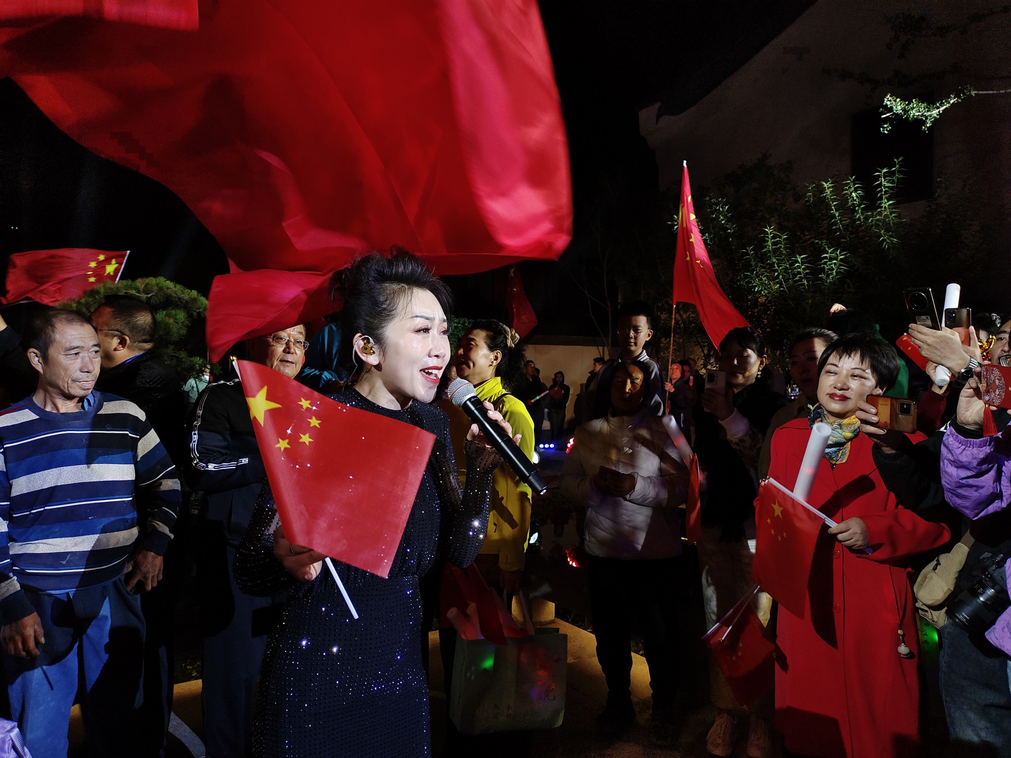 在千人红歌会的环节中,不同的表演团队分组分块在不同院落街巷、不同时段开展相应的表演活动,创新的“行进式”演出让演职人员与群众“打成一片”。开场节目合唱《今天是你的生日,我的中国》,掀起演出的第一个高潮。歌曲《向往》《大同留梦》、电声摇滚联唱《时代的风》唱出新时代的豪情梦想。女生小合唱《谷穗黄了》、男女对唱《打酸枣》表现出人们对美好家园幸福生活的赞美之情。民乐演奏《花好月圆》《拔根芦柴花》展现出“景是故乡美,人是邻里亲”的美好画面。千人大合唱《我和我的祖国》《歌唱祖国》,唱出云州儿女对祖国七十五周年华诞的美好祝愿。