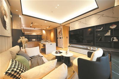 利用装配式装修技术,“科技宅”空间结构变得更加灵活。在“科技宅”样板间内,记者看到,当需要拓展空间时,轻按相关按钮,电视墙便向后移动,客厅瞬间变大。