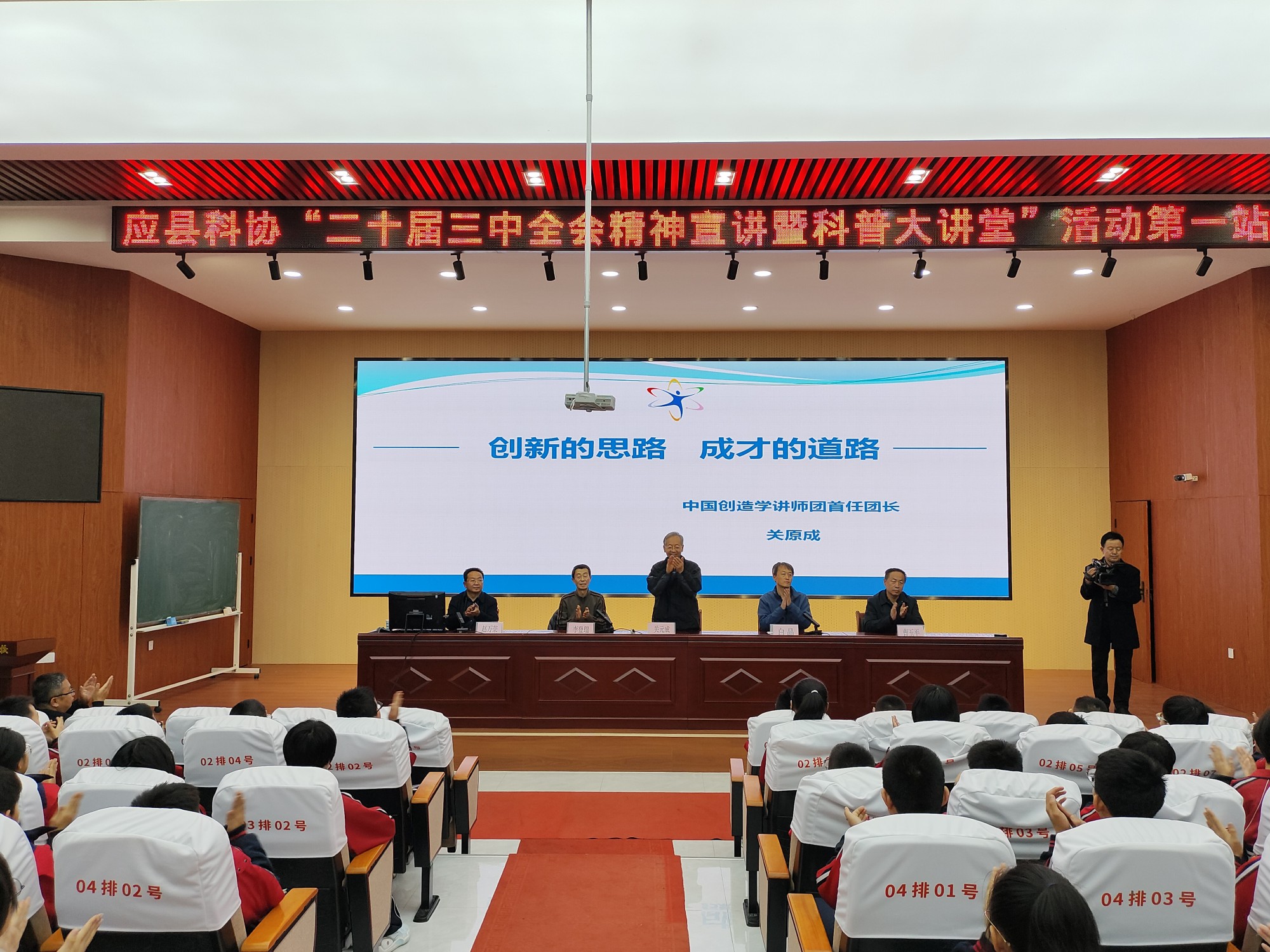 山西科技新闻网大同讯 11月13日——14日,山西科技新闻出版传媒集团大同分公司联合《山西科技报》社、应县科协邀请中国创造学讲师团首任团长、原山西省科协副主席、正厅级巡视员关原成教授走进应县交警队、应县二中、应县三中,开展了“二十届三中全会精神宣讲暨科普大讲堂”活动,活动共计一千余人参加。