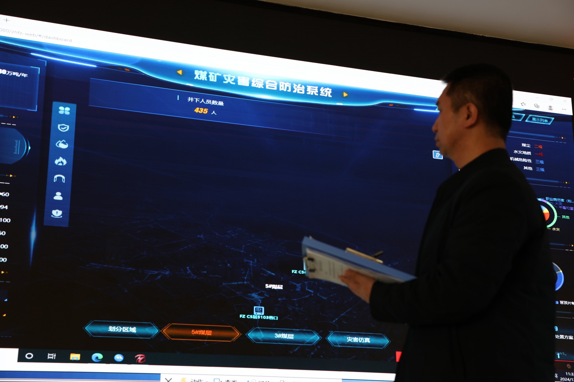 “磊哥,你看,目前顶板检测是二级风险,冒顶片帮的隐患占比较大……”信息化管理科小梁一边指着系统界面一边回答道。