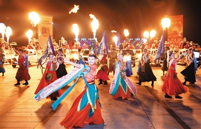 是日晚,50支热气球参赛队伍齐聚古城永泰门广场,搭载尖端喷火设备的敞篷卡车有序排成方队,伴随着动感的节奏和变幻的光影,热气球喷火秀“火力全开”。烈焰喷薄而出,并随着音乐节奏的变化而变化,高高的“火龙”照亮夜空并与广场上的音乐喷泉遥相呼应。热气球喷火巡游表演把城市广场装扮得格外喜庆,也将大同装扮成“不夜城”,美轮美奂的光雕带给观众无限的梦幻世界,也为广大市民和游客带来了一场盛大的视觉盛宴,丰富了群众的文化生活,为城市发展带来了生机和活力。