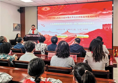 张保国给师生们讲抗战故事。