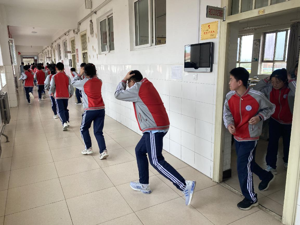 接着,在紧急避险后,又下达“安全撤离”命令。同学们在老师的引导下,从楼梯跑步下楼。在政教处、班主任老师的指挥下,根据逃生路线有序、快速向操场撤离。 到达学校操场安全区域后,班主任、班长对学生人数进行清点、上报。