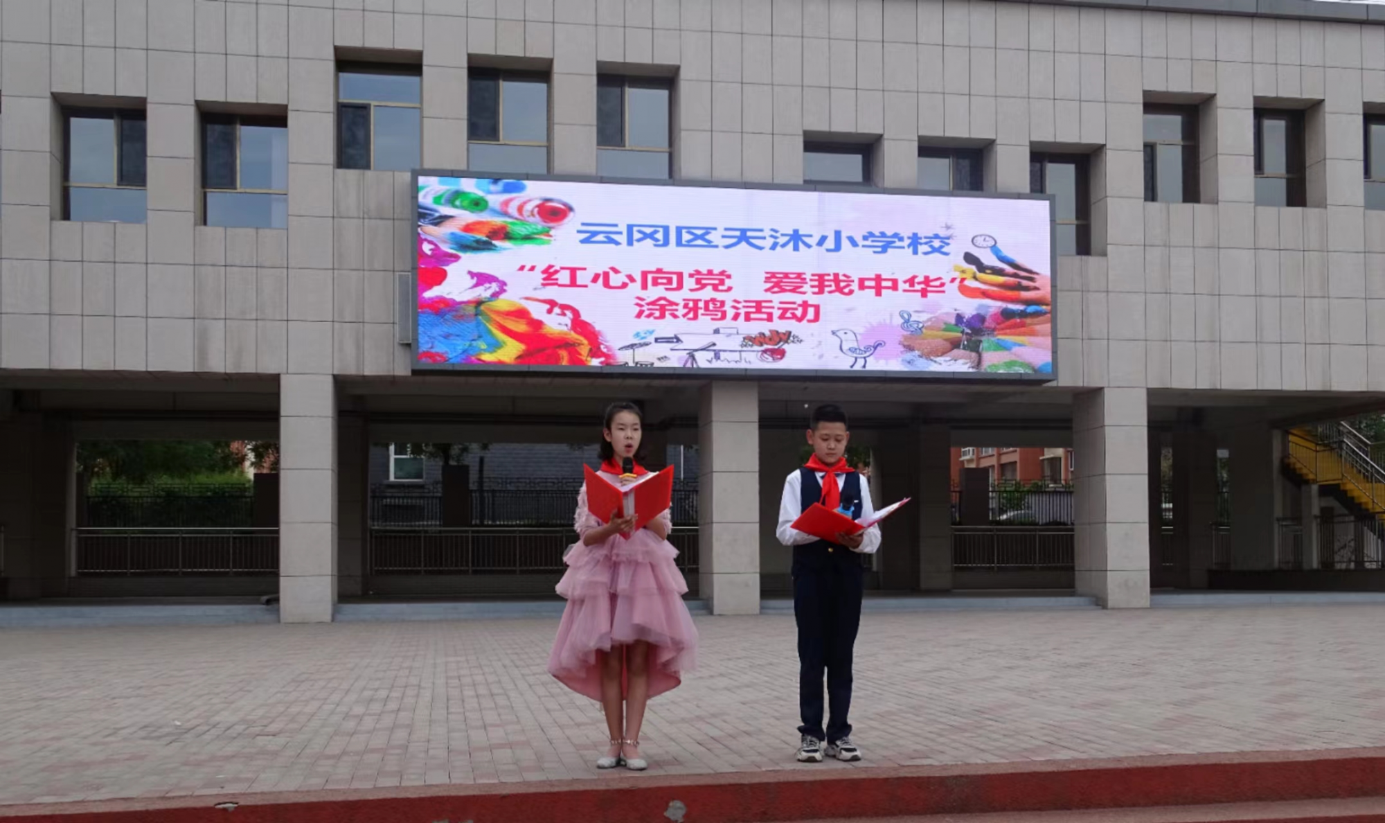 为了更好地落实"立德树人"根本任务,通过描绘党的光辉历史、红色革命故事、祖国的繁荣景象、少年儿童的幸福生活等内容,表达我校师生对党、对祖国的热爱之情,同时,也为了展示学校师生的风采及艺术教育活动成果,我校于5月27日下午举行了以"红心向党 爱我中华"为主题的百米长卷涂鸦活动。