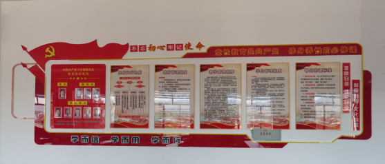 推进党群服务中心标准化、规范化建设,完成提标改造、功能升级,更加突出政治功能、党建主题和红色韵味,使党群服务中心成为广大党员守初心践使命的“红色驿站”。通过悬挂党旗、入党誓词、党员义务和权力、党组织基本制度等内容,建设红色文化墙、红色文化广场等宣传教育阵地,定期组织学习习近平新时代中国特色社会主义思想等新精神,按时召开“三会一课”等党内组织生活,每次主题党日组织党员重温1次入党誓词,让广大基层党员在家门口就能接受红色教育、强化党性锤炼,筑牢“不忘初心 牢记使命”思想根基,立足新时代展现新作为。