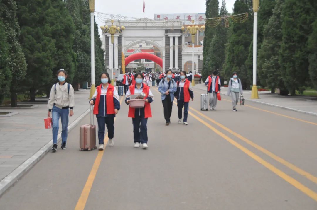 在校团委和高二年级的组织领导下,上午从7:00到12:00,志愿者们分四批次进行服务,分工明确,有条不紊,热情洋溢地迎接新同学秩序井然。有的在校门劝返家长维持秩序,有的指导查看报名所需材料,耐心讲解报名流程,有的介绍校园文化风采,有的引导新生到各班主任处登记信息,有的在路口帮助识别各公寓和卧具领取处……他们用实际行动展现出了一中学子甘于奉献,勇于担当的新时代团员风貌。