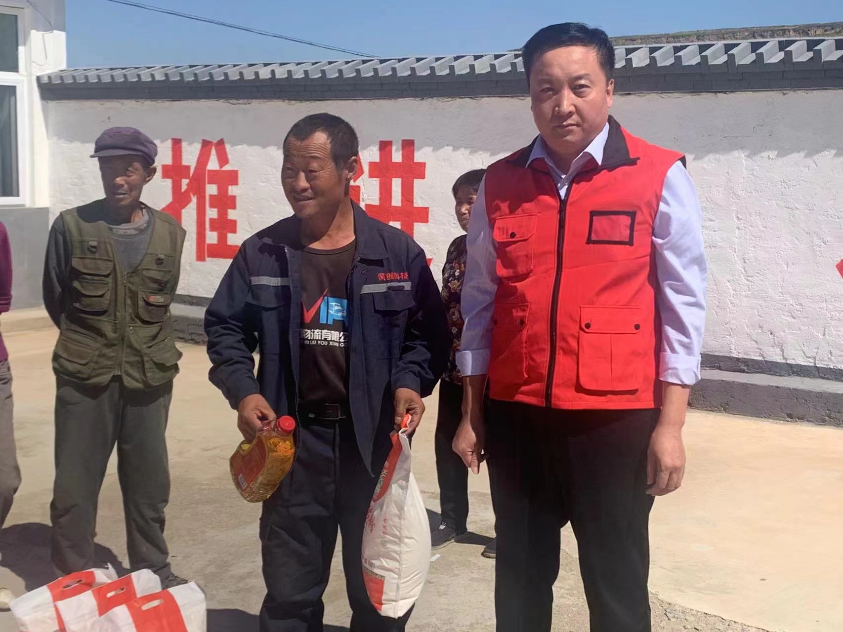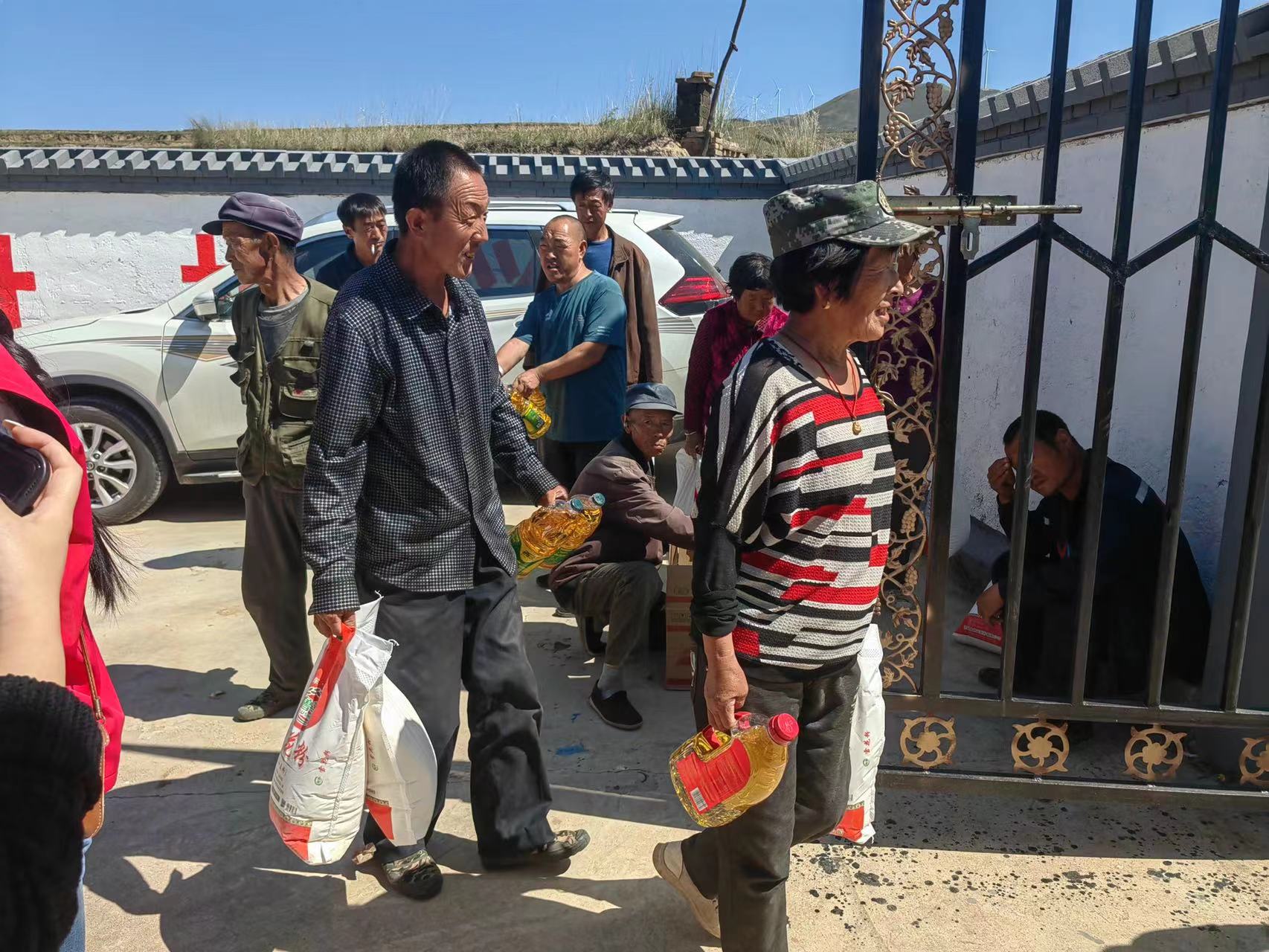 上午10时,志愿者们来到了天镇县南冯窑村,该村现有200多名村民,靠种地和养驴为生。志愿者们为村民带来米面油和月饼等慰问品,为他们带来节日的问候。