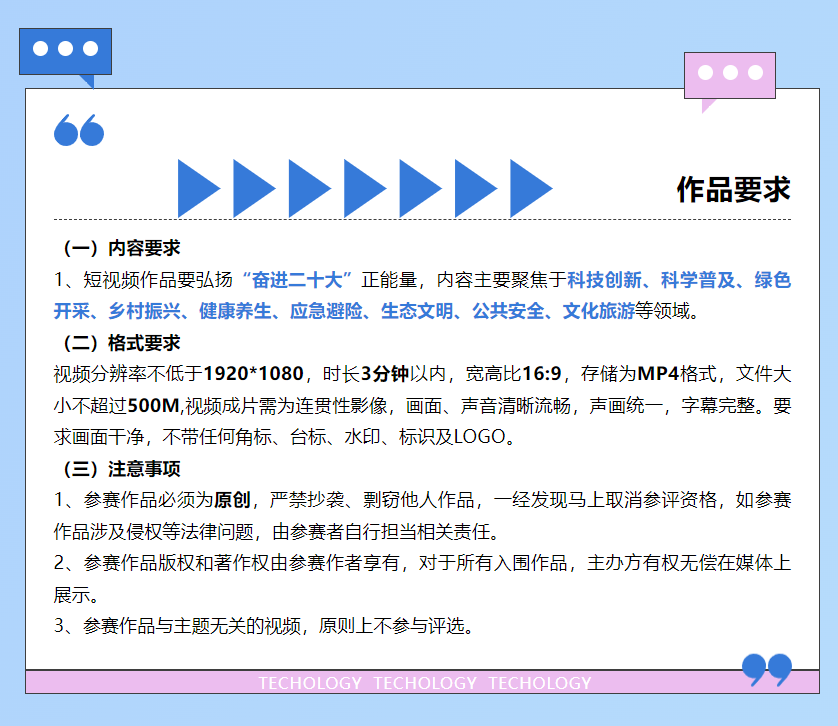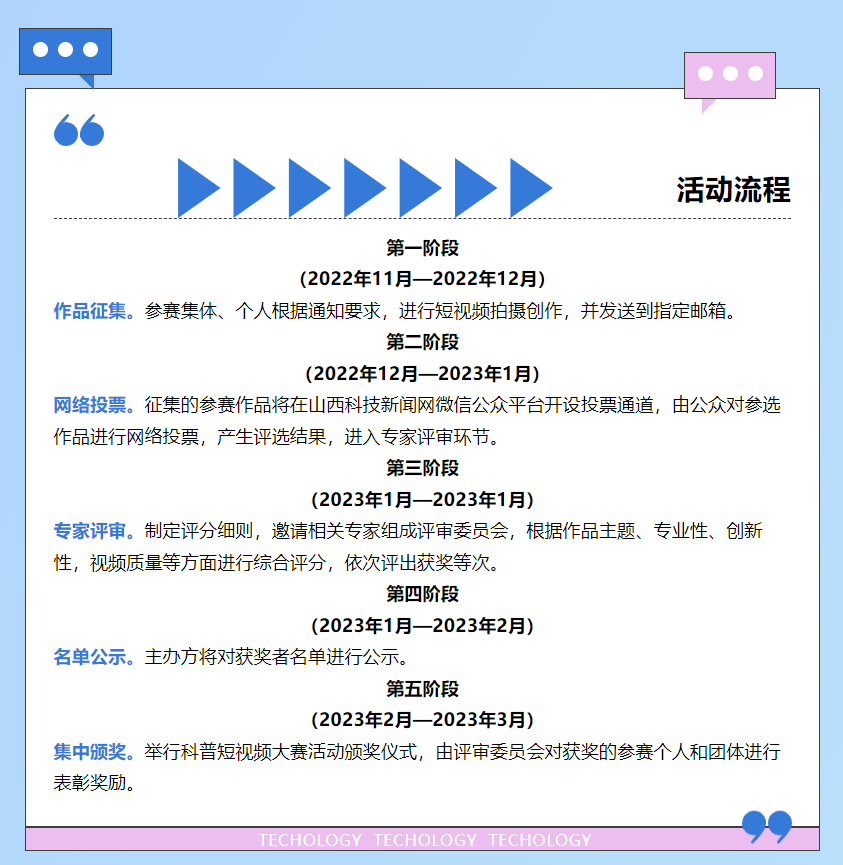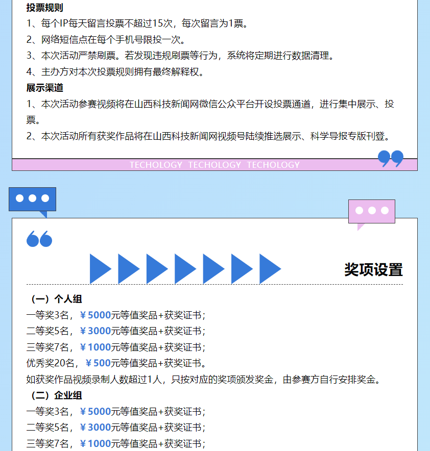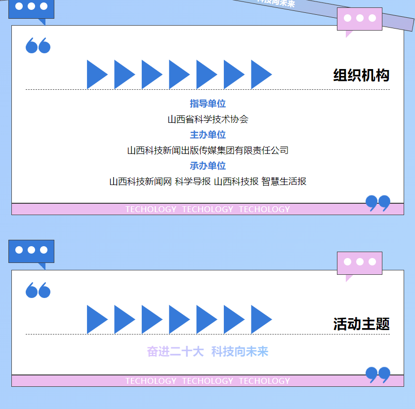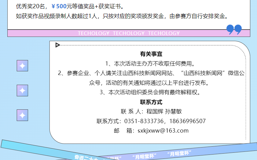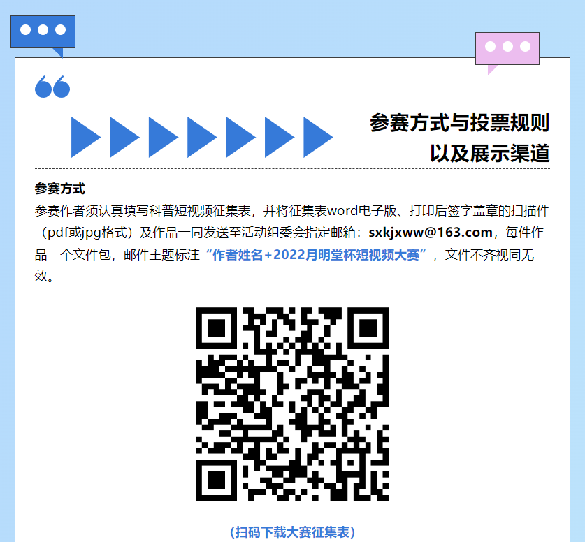 为深入学习贯彻党的二十大精神,以科普高质量发展助力建设全民终身学习的学习型社会、学习型大国,进一步满足中国式现代化对于丰富人民精神世界的本质要求,山西科技新闻出版传媒集团现决定于2022年11月8日开展“奋进二十大 科技向未来”首届“月明堂杯”原创短视频征集活动,有关事项通知如下。
